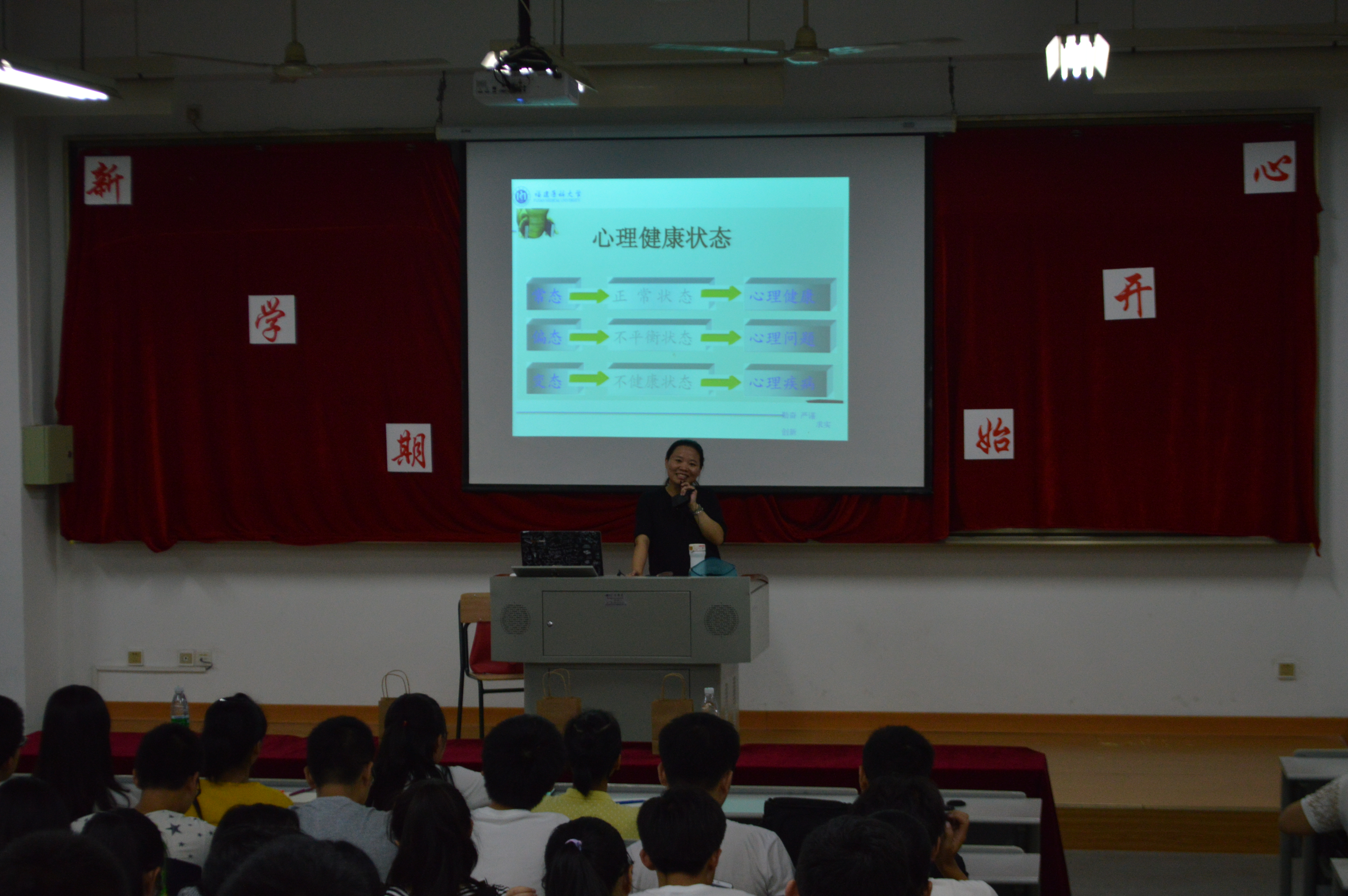 讲座的主题为“新学期,‘心’开始”。讲座首先以新入大学是什么样的心情引入心理话题,再进行互动了解同学们的心理状况。其次再对同学们的心理状态做出一一的解答。心理讲座上,同学们积极互动,和老师进行交流说出自己的心理困惑。最后,老师给出了一些建议,告诉同学们在新的学习环境,新的生活里如何去适应,同学们受益良多。