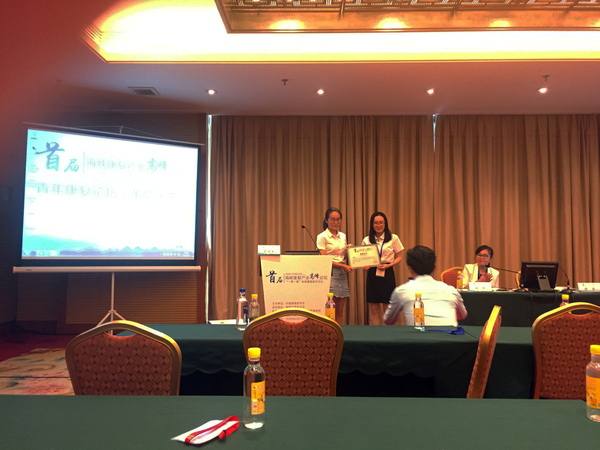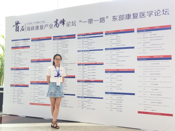 2018年6月29日-7月1日,由中国康复医学会主办、福建中医药大学承办的“首届海峡康复产业高峰论坛暨‘一带一路’东部康复医学论坛”在福州西湖宾馆隆重举行,来自国内外康复医学界及相关领域权威专家学者受邀做专题报告。本次论坛是以“协同创新,助力康复产业发展”为主题的一场高规格的康复领域学术大会。公司康复医学与理疗学专业硕士研究生彭雯雯参加大会青年论坛英语专题演讲,演讲的题目是“Prehypertension exercise training attenuates hypertension and cardiac hypertrophy”,获中国康复医学委员会评审颁发授课证书。(康复治疗学系 林诚)