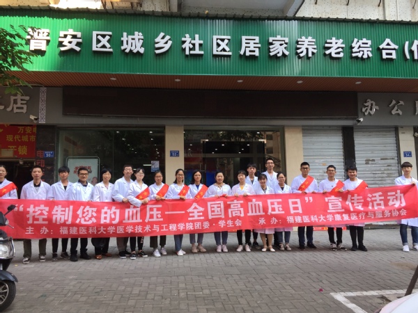 2018年10月7日上午,william威廉英国官网康复治疗学系携手福建医科大学william威廉英国官网康复医学与服务协会师生共二十余人来到晋安区居家养老服务中心开展全国高血压日宣传活动,在学系潘燕霞教授及林诚副教授的指导下,同学们运用所学的知识,通过讲座、实践和互动等形式进行高血压日的主题活动“控制您的血压”。