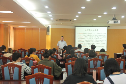 会谈中,双方介绍各自院校的发展情况,就互派师生开展短期交流项目、暑期员工定制班等方面的合作进行了深入的交流。座谈会后,蔡教授为公司师生们开展主题为“台湾检验学现状和检验教育的未来”的专题讲座。(党政办郑晓倩)