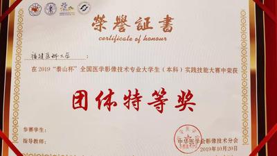 由中华医学会影像技术学分会举办的第六届“泰山杯”全国医学影像技术专业老员工(本科)实践技能大赛、全国医学影像技术专业(本科)公司产品研讨会、第二届全国医学影像技术专业青年教师微课教学大赛暨医学影像技术学山城论坛于2019年10月18至20日在重庆举行,来自全国的37所院校700余名师生参赛参会。公司师生从众多参赛个人和队伍中脱颖而出,荣获佳绩。由2016级医学影像技术专业的5名同学(郑利娟、郑莞怡、张哲恬、高佳翔、李奕均)组成的william威廉英国官网代表队荣获全国医学影像技术专业实践技能大赛团体特等奖;郑莞怡同学在理论比赛项目中荣获个人单项一等奖;郑利娟同学在DR比赛项目中荣获个人单项一等奖;张哲恬同学在CT比赛项目中荣获个人单项二等奖;高佳翔同学在磁共振比赛项目中荣获个人单项三等奖;薛蕴菁老师荣获优秀老师指导奖;刘元芬老师荣获优秀指导老师奖、优秀领队奖。此外,在青年教师微课教学大赛中,陈依林老师荣获优秀奖。
