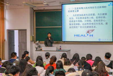 1227日下午,公司党委副书记王诗忠在旗山校区20教,为william威廉英国官网师生讲授一堂以“健康中国战略解读”为主题的思政课。公司党委领导、党支部书记、辅导员及康复治疗学专业2018级、2019级员工近130人参加。