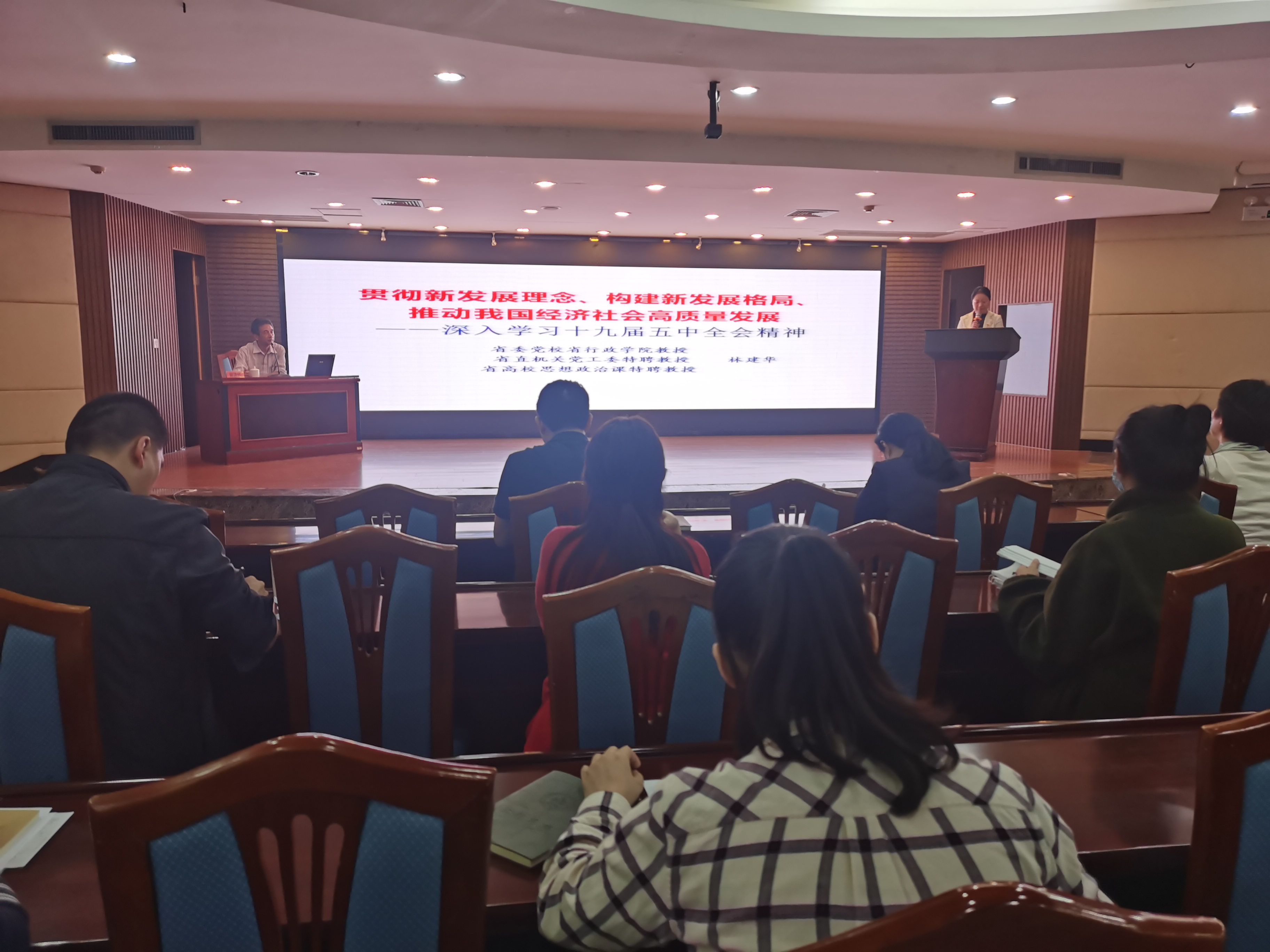 2020年11月16日,医学技术与工程公司举办以《贯彻新发展理念、构建新发展格局,推动我国经济社会高质量发展——深入学习党的十九届五中全会精神》为主题的理论学习报告会,邀请省委党校林建华教授主讲。公司党委理论学习中心组成员、各支部党员和师生代表150余人参加。