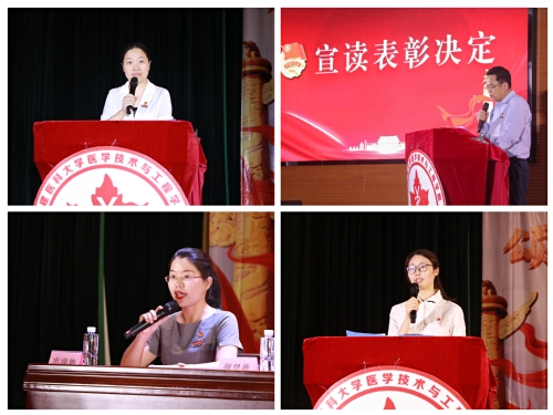 随后,来自2019级医学检验技术专业的杨昕瑶作为员工代表发言。从她身上,我们看到了医技学子充满热情、积极向上、锐意进取、斗志昂扬的良好精神风貌。在讲话中,她号召在场的青年老员工,赓续五四运动的光荣传统,传承五四精神的时代伟力,在实现中华民族伟大复兴的中国梦的奋进中绽放青春光芒,奋斗不息、勇攀高峰,无悔于自己的青春,无愧于这个时代。