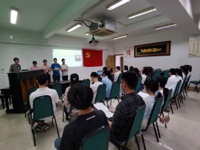 此次经典诵读活动由支部成员分为7个小组组队参加。各组对经典诗文革命背景进行详细介绍。7组作品主题鲜明突出,内容积极向上,朗诵辅以视频、PPT、音乐等形式,现场表现感情饱满真挚,让党员们深受触动。最后,《青春中国》、《我用残损的手掌》、《可爱的中国》等3组诵读获评活动最佳人气前3名。