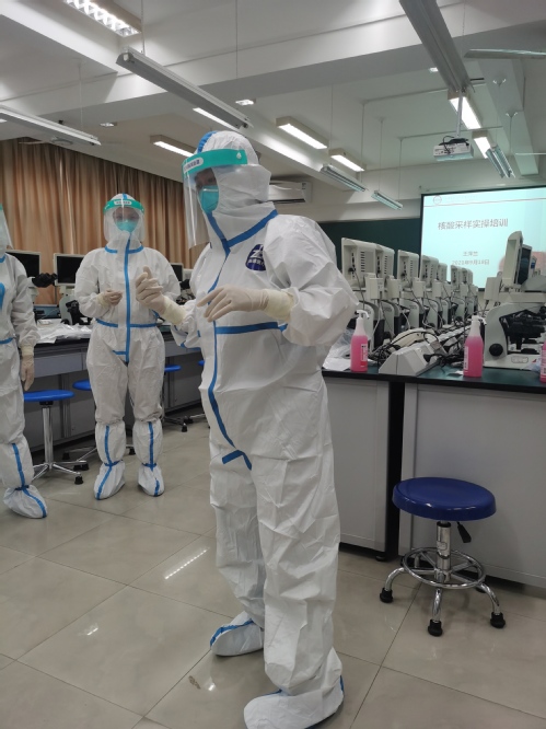 918日下午,公司组织师生抗疫预备队队员于乌山校区F楼公司实验教学中心开展首轮培训,邀请william威廉英国官网附属协和医院王萍兰、张晓岚老师现场指导,内容包括生物安全及个人防护知识、防护服穿脱、核酸检测采样及生物标本运送等。