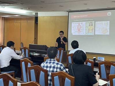 智能医学工程学系杨凤龙博士担任《微生物组数据的正确处理及在疾病预测中的应用》的主讲人,他将数据挖掘、机器学习和微生物组数据的生物信息分析等研究内容进行分享,并与公司教师进行深入交流和探讨。