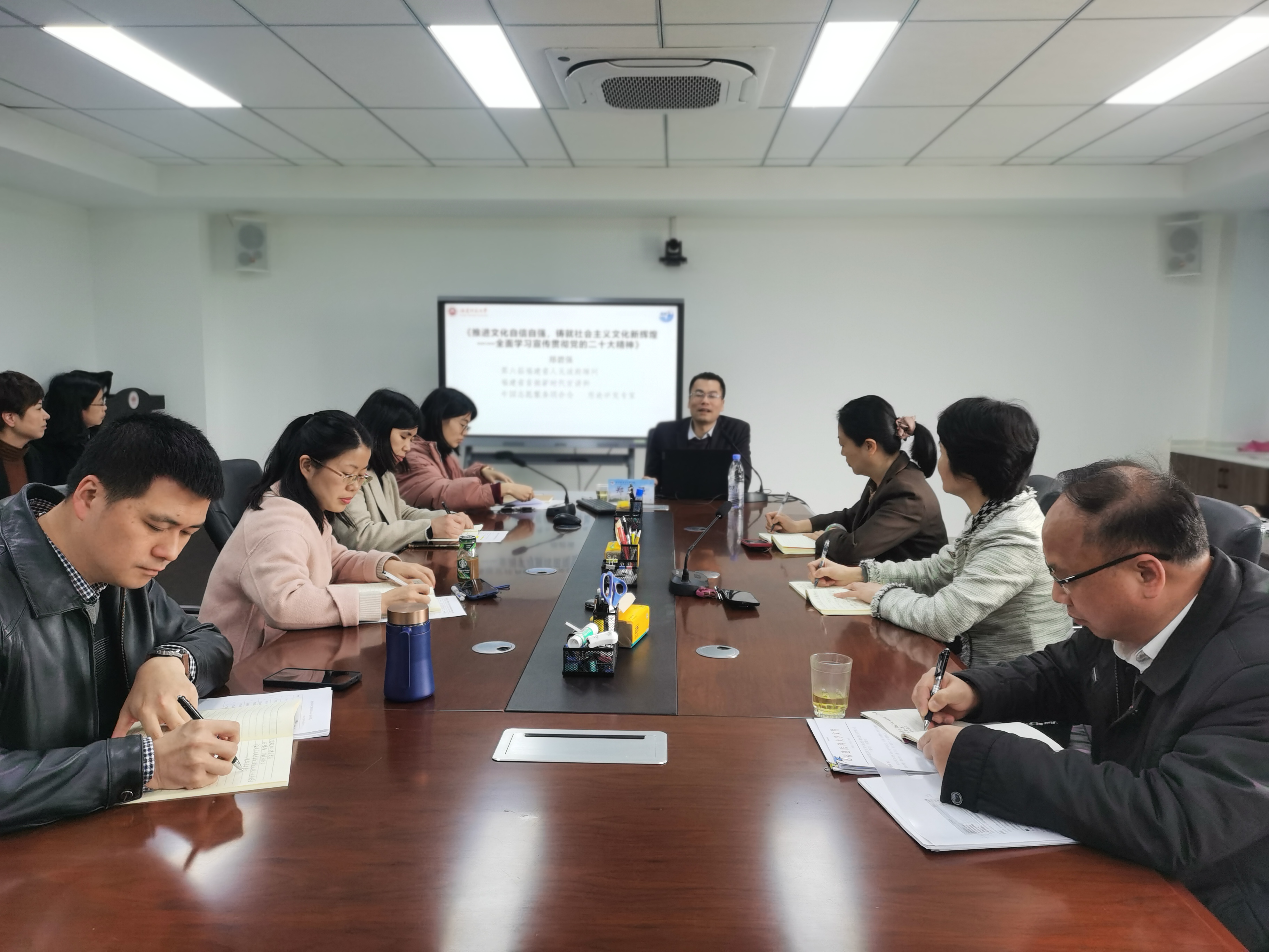 郑教授以《推进文化自信自强,铸就社会主义文化新辉煌——学习宣传贯彻党的二十大精神》为主题,深入浅出的对党的二十大报告中关于新时代文化建设部分进行解读,强调了意识形态工作的重要性,提出要牢牢把握文化育人的正确方向,用习近平新时代中国特色社会主义思想教育人,用党的理想信念凝聚人,着力培养高素质医学人才,打造医学文化建设新高地。