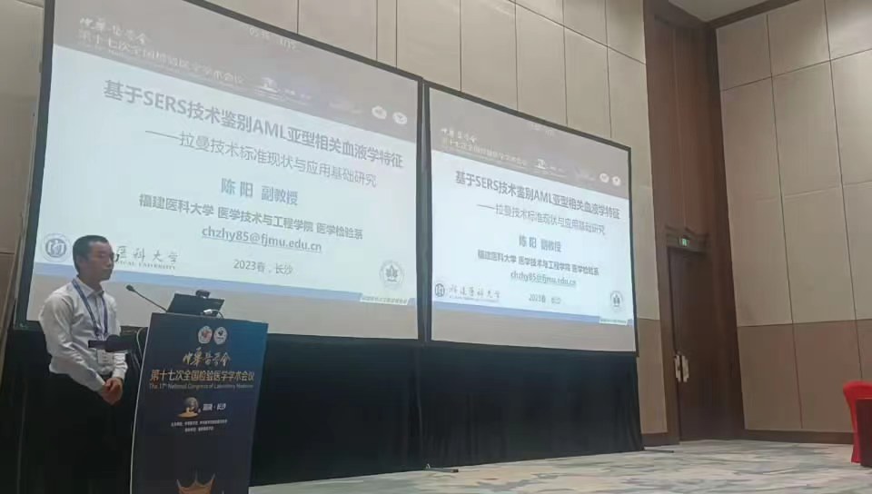 2023年3月30日~4月1日,中华医学会第十七次全国检验医学学术会议在湖南长沙举行。会议由中华医学会、中华医学会检验医学分会主办,湖南省医学会承办,涵盖临床检验和实验室管理各领域最新的研究成果和发展趋势,对检验医学所面临的新形势和新挑战进行广泛深入的交流探讨。医学检验系陈阳副教授指导硕士生叶旻璐同学投稿的论文“基于SERS技术鉴别急性髓系白血病亚型相关血液特征”获评为优秀论文,陈阳副教授受邀在“标准/指南/共识的解读及应用论坛”做口头报告。