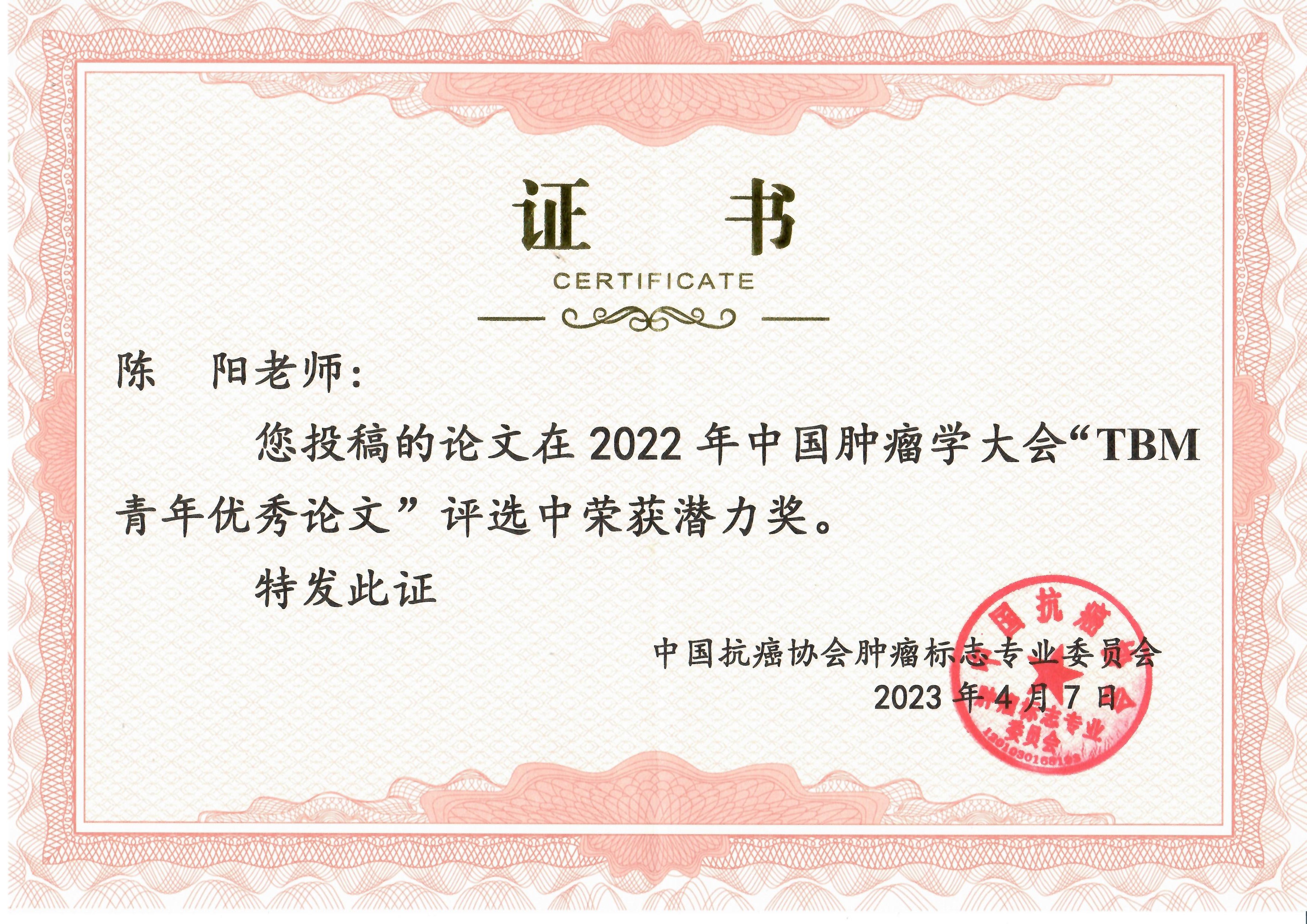 2023年4月7日-9日,2022中国肿瘤标志物学术大会在上海举行。本届大会入选中国科协《重要学术会议指南》,是我国肿瘤标志物领域最高学术水平的交流盛宴。会议共收到有效提交稿件959篇,经学术专家委员会评选出62篇优秀论文。医学检验系陈阳副教授投稿论文“Differentiation and prognostic stratification of acute myeloid leukemia by serum-based spectroscopy coupling with metabolic fingerprints”获评优秀论文“潜力奖”。据了解公司(含附属医院)仅2篇获奖,该论文为校本部唯一获奖论文。