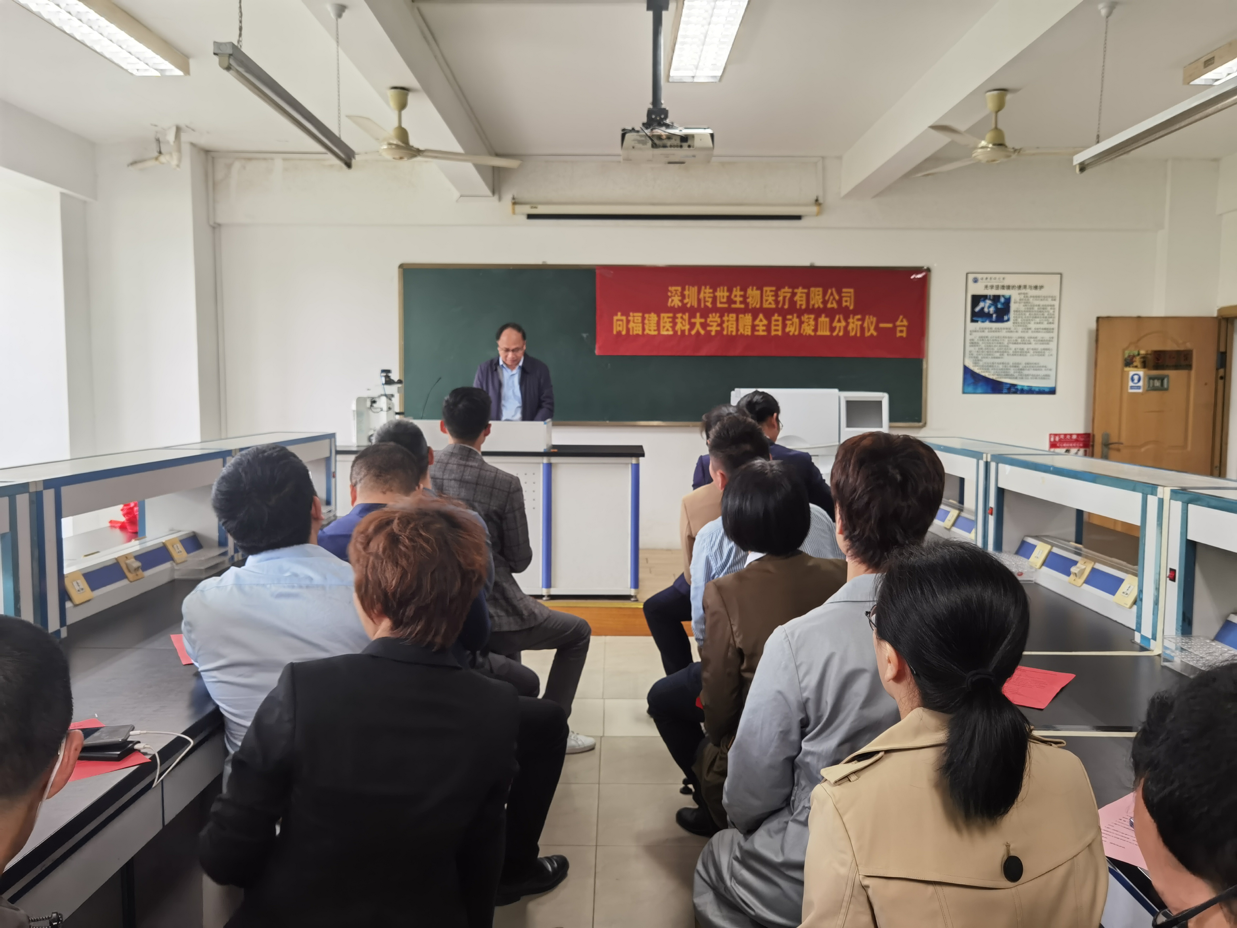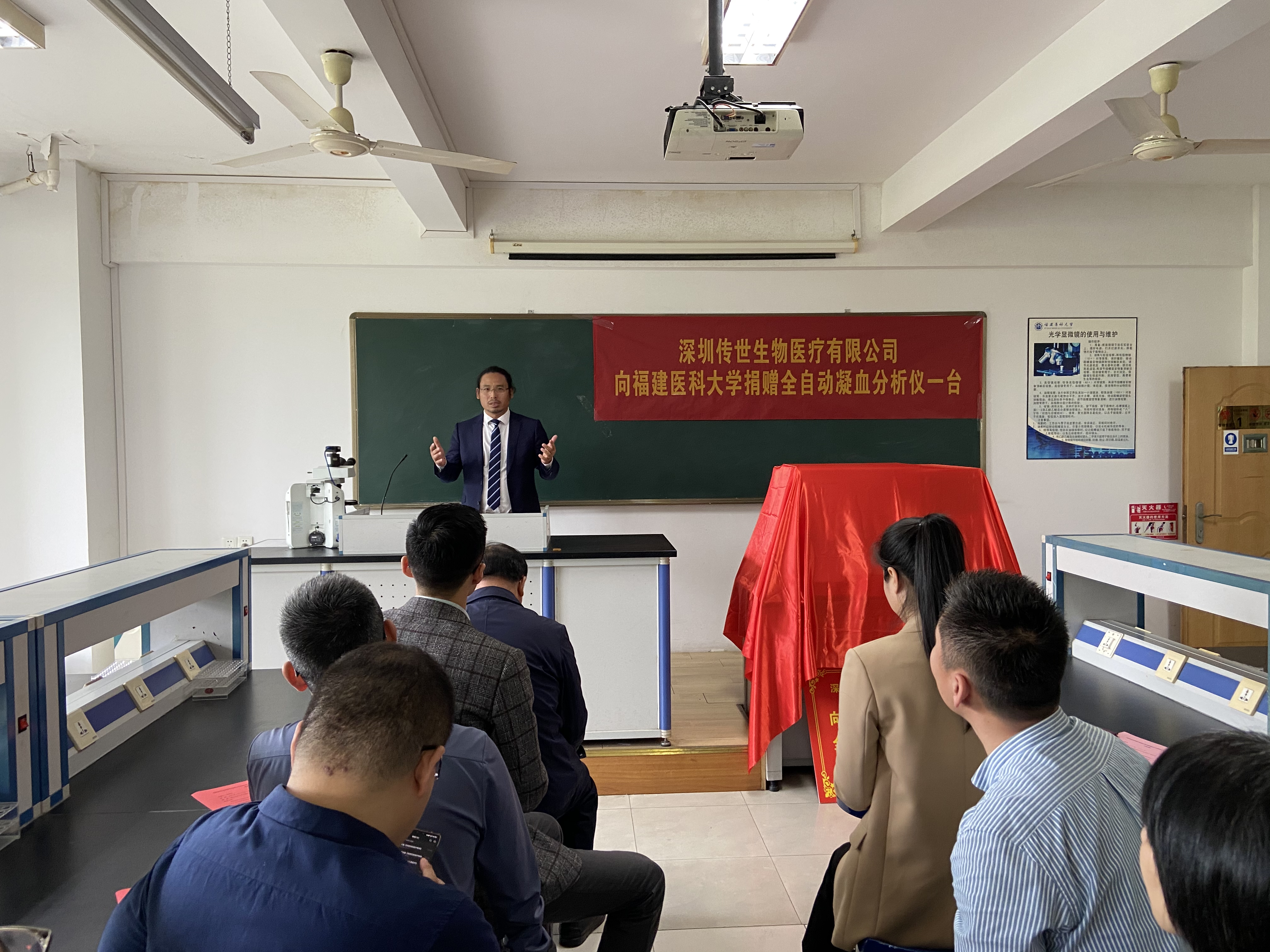 连铸淡副经理代表全院师生向深圳传世生物医疗有限公司的爱心捐赠表示衷心感谢!本次捐赠的全自动血凝仪将用于医学检验技术专业核心课程《临床血液学检验技术》和《临床基础检验学技术》的实验教学,帮助员工在学习手工操作的基础上,熟练运用自动化仪器,更好地理论联系实践,提高岗位竞争力,对接临床检验工作,并表示会把捐赠企业的教育情怀进一步发扬光大,充分发挥全自动凝血分析仪的作用,更好地服务教学,服务于医学检验技术专业的人才培养