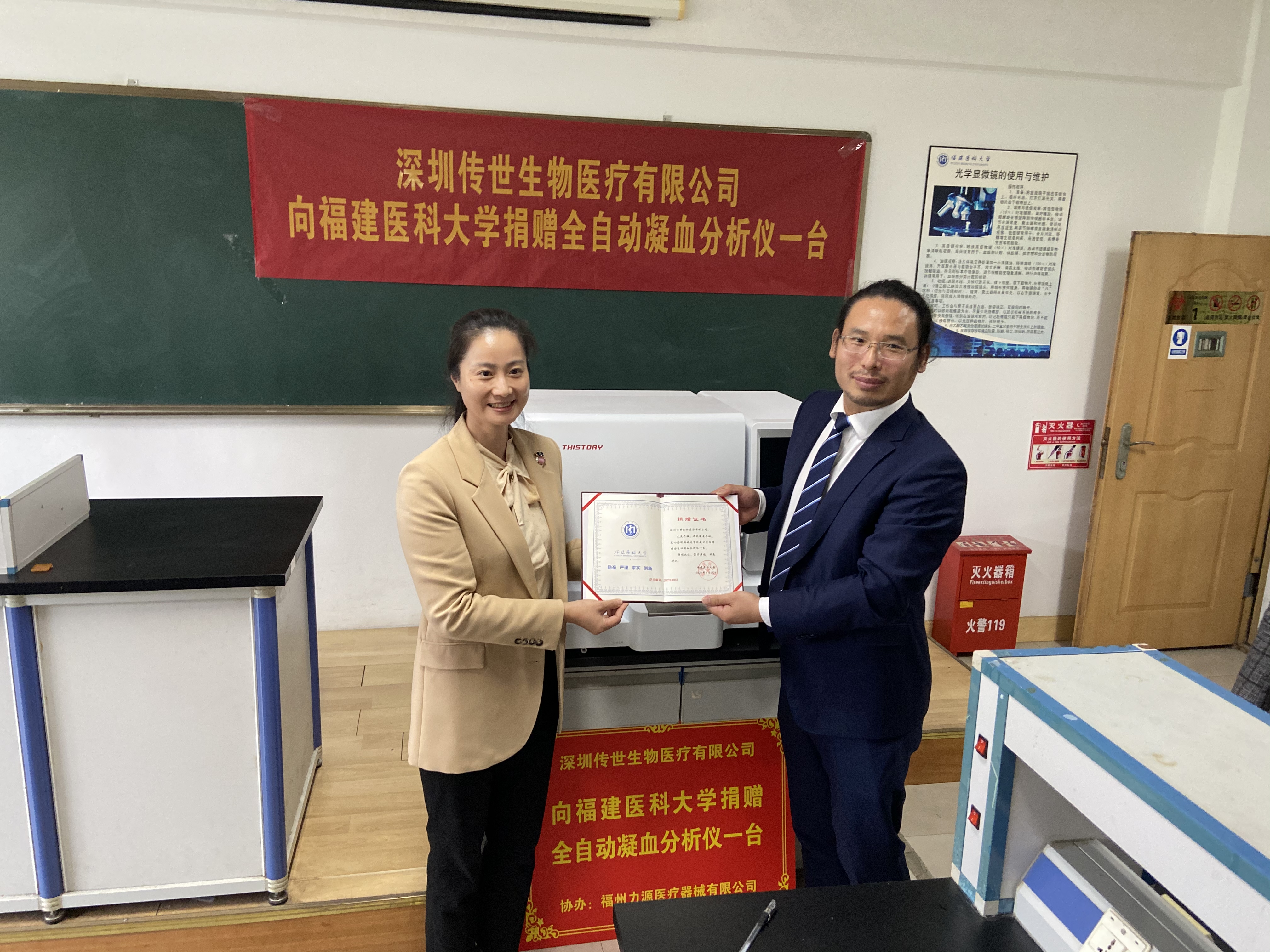 深圳传世生物医疗有限公司向公司捐赠全自动血凝仪