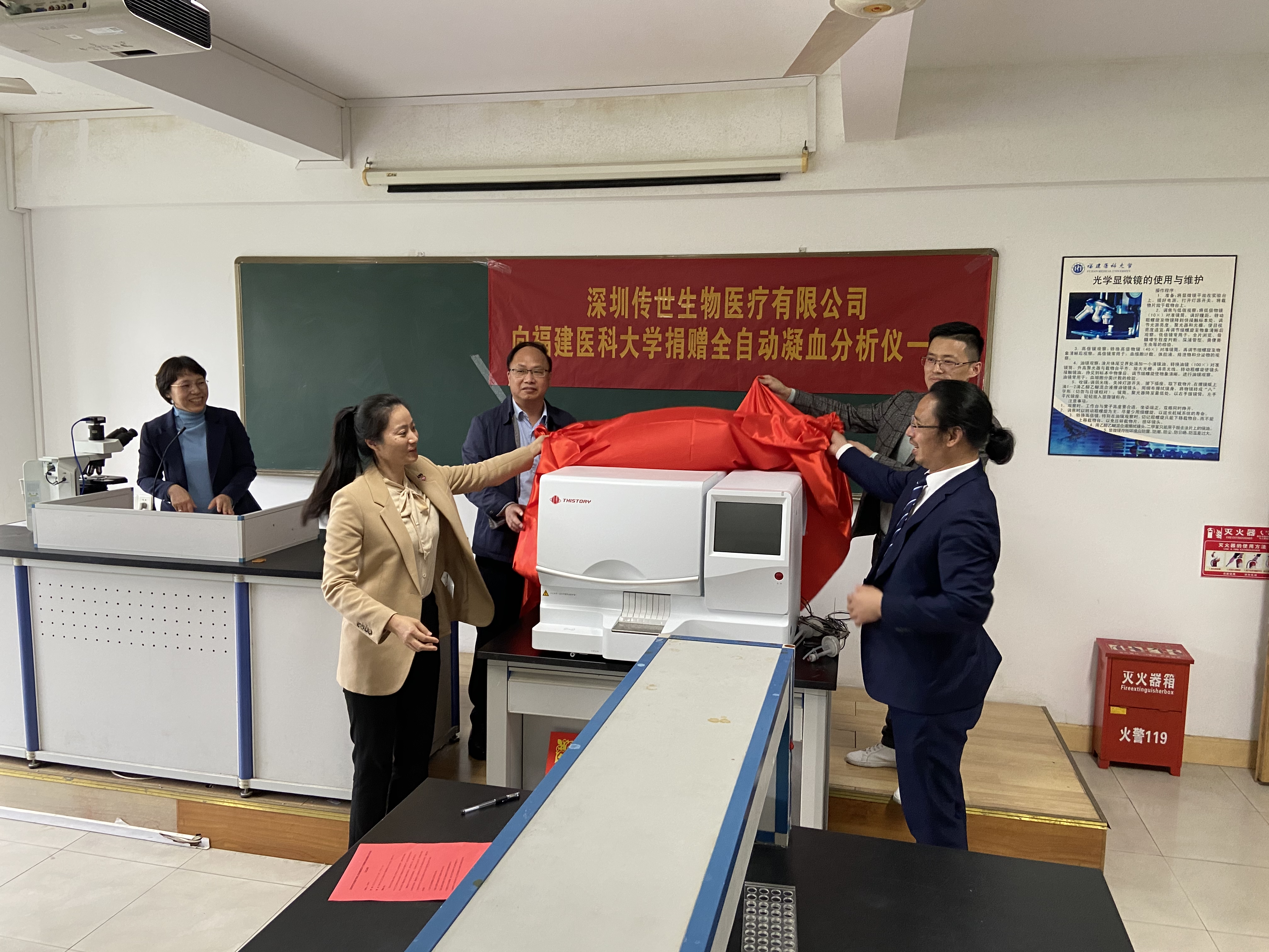 425日下午,公司在乌山校区F楼南403举行全自动血凝仪捐赠仪式,公司党委统战部副部长、员工事务办公室主任、教育发展基金会秘书长杨华,深圳传世生物医疗有限公司营销中心总经理唐清宁、销售经理罗清清,中元汇吉生物技术股份有限公司总经理熊华于、闽北区域经理刘育铭,福州力源医疗器械有限公司董事长李修点、总经理陈江涛、营销副总谭长伟,公司副经理连铸淡和教师代表等近20人参加了捐赠仪式。杨华、连铸淡、唐清宁、李修点共同为全自动血凝仪揭幕。仪式由公司教学科研办公室主任兼医学检验系副主任徐建萍主持。