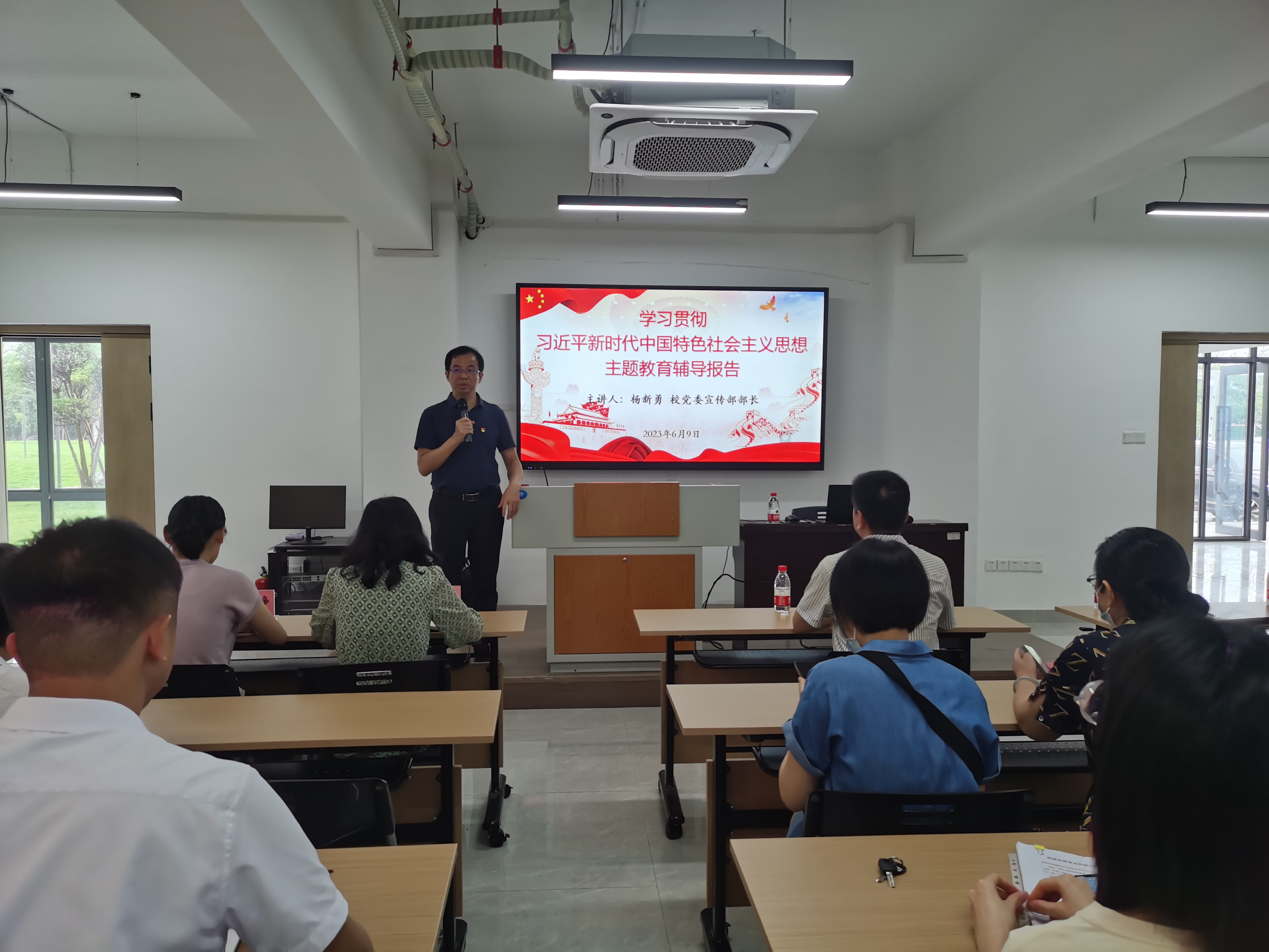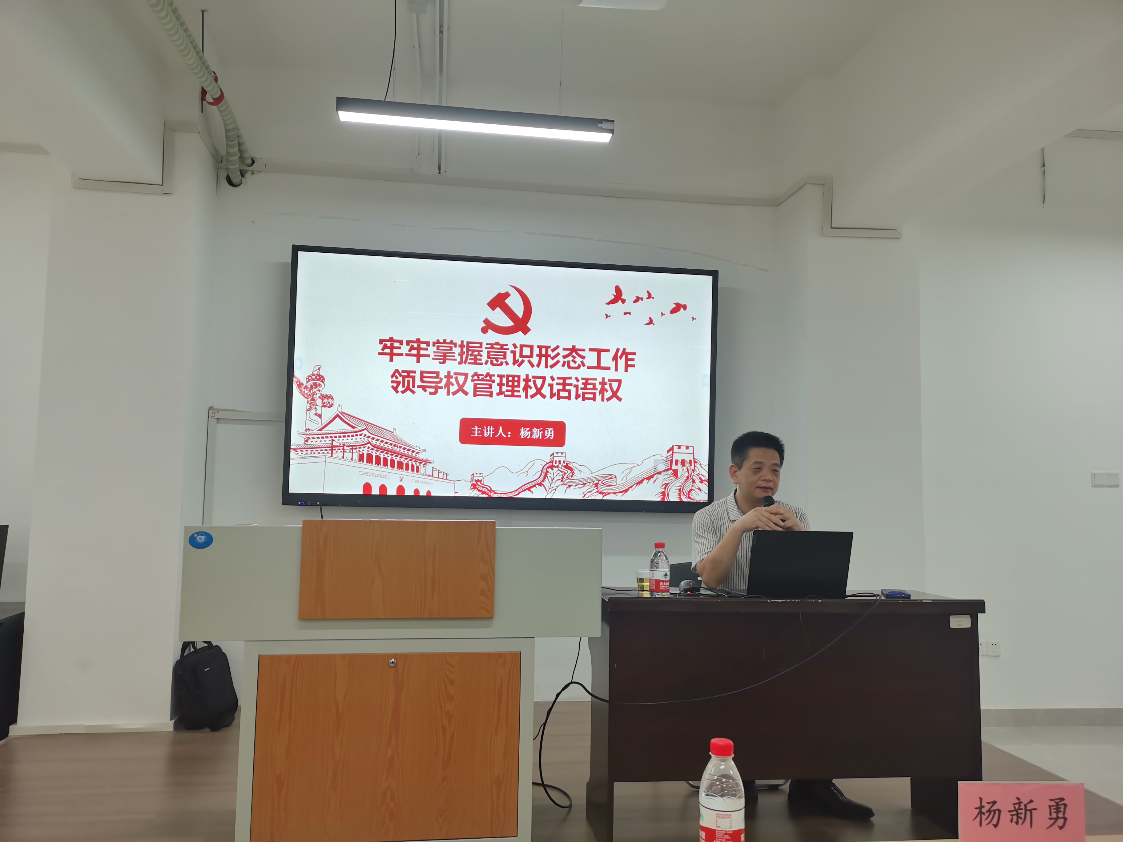 杨新勇部长以《深入学习党的二十大精神,坚守意识形态阵地》为题,围绕什么是意识形态、意识形态斗争和牢固占领意识形态阵地等方面,以翔实的工作案例、生动的语言为师生进了阐释解读。引导师生党员深入学习贯彻习近平新时代中国特色社会主义思想,牢牢掌握意识形态工作领导权、主动权、话语权,抓好校园各类思想文化阵地管理。