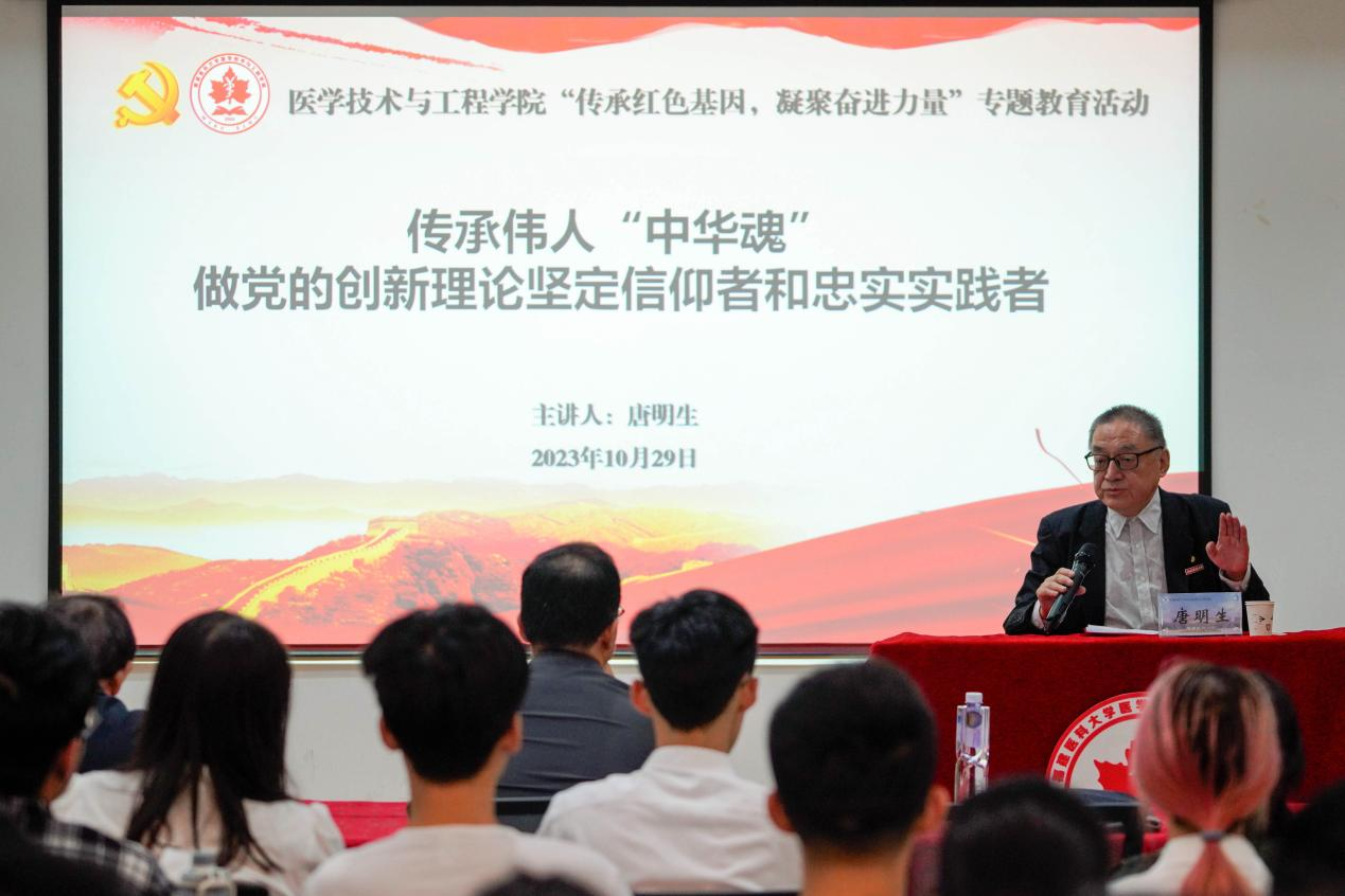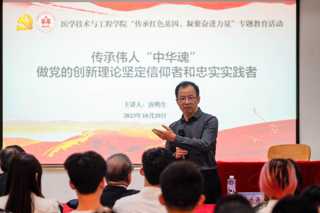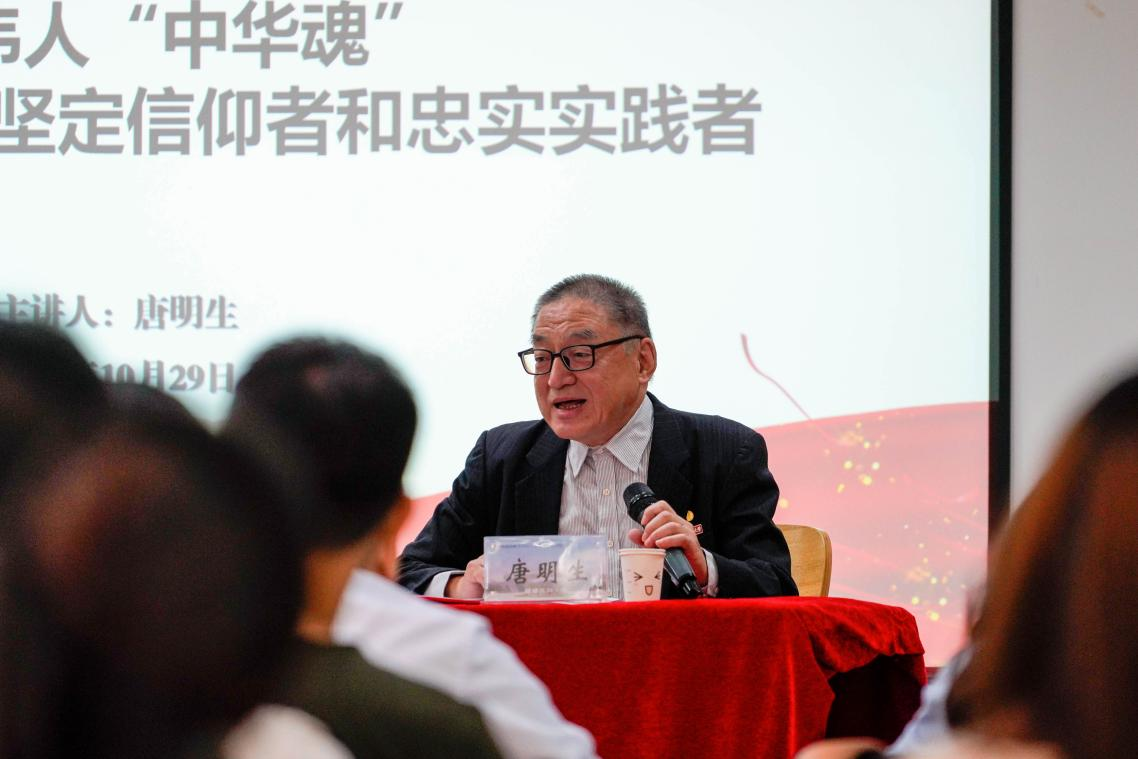 为深入学习贯彻习近平新时代中国特色社会主义思想,推动党史学习教育常态化长效化,缅怀伟人丰功伟绩,赓续精神血脉,传承红色基因,2023年10月29日,公司党委精心打造的红色思政课在旗山校区创新创业创造中心精彩开讲。校关工委副主任唐明生以“传承伟人‘中华魂’,做党的创新理论坚定信仰者和忠实实践者”为题,为公司师生带来了一次生动的红色文化教育课。公司关工委副主任李元芳,公司党委书记戴乐源,各年级辅导员,公司全体团学干部,入党积极分子等共计100余人参加活动。活动由公司党委副书记薛来兴主持。