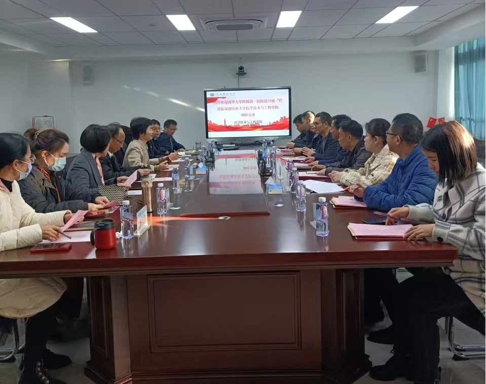 12月25日下午,南华大学附属第一医院赵兴斌经理、医学检验技术专业负责人和骨干教师等一行9人到公司调研交流。公司林东红经理、孙玉宁常务副经理、连铸淡副经理、公司教学科研办、医学检验系教师代表参与交流。交流会由经理林东红教授主持。
