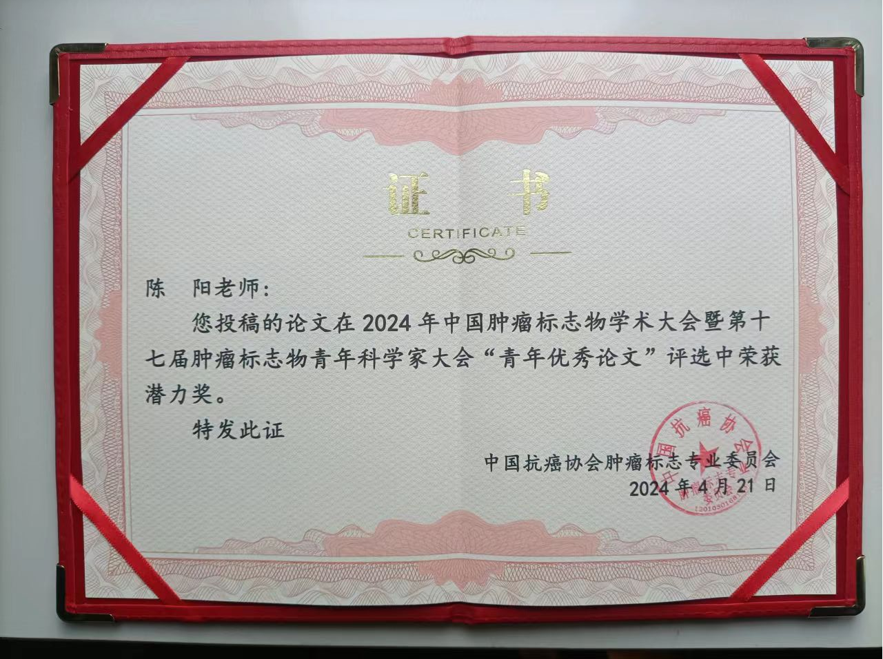 公司医学检验系陈阳副教授在2024中国肿瘤标志物学术大会上获奖