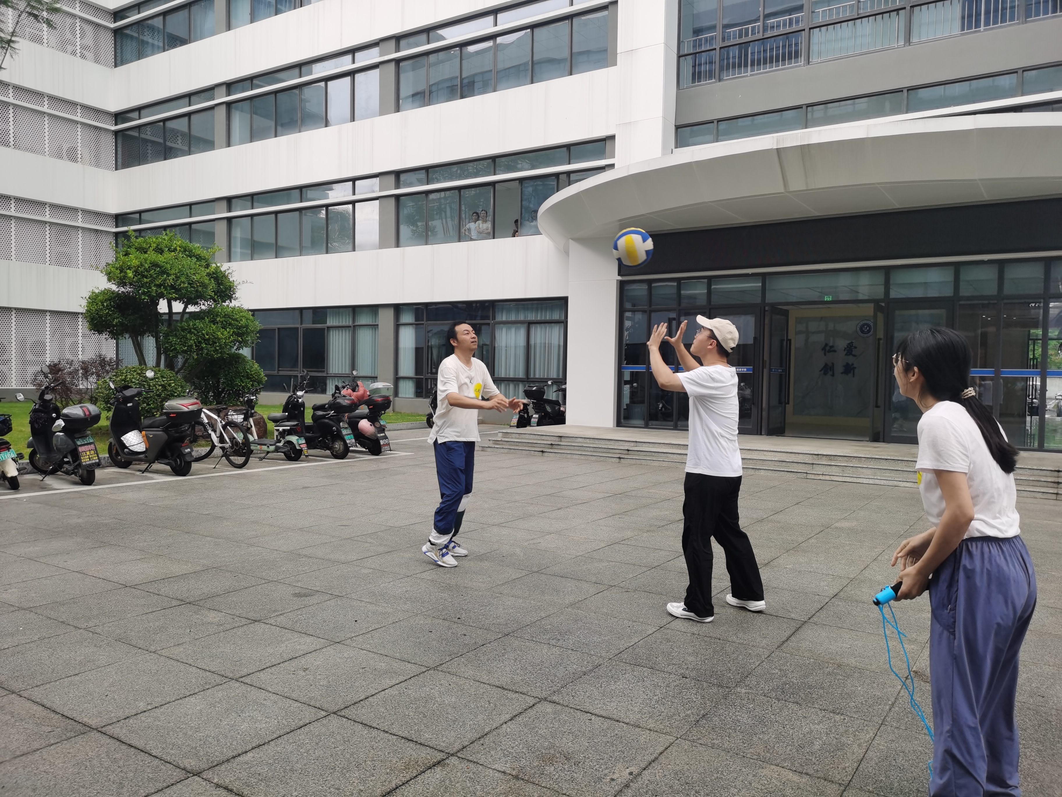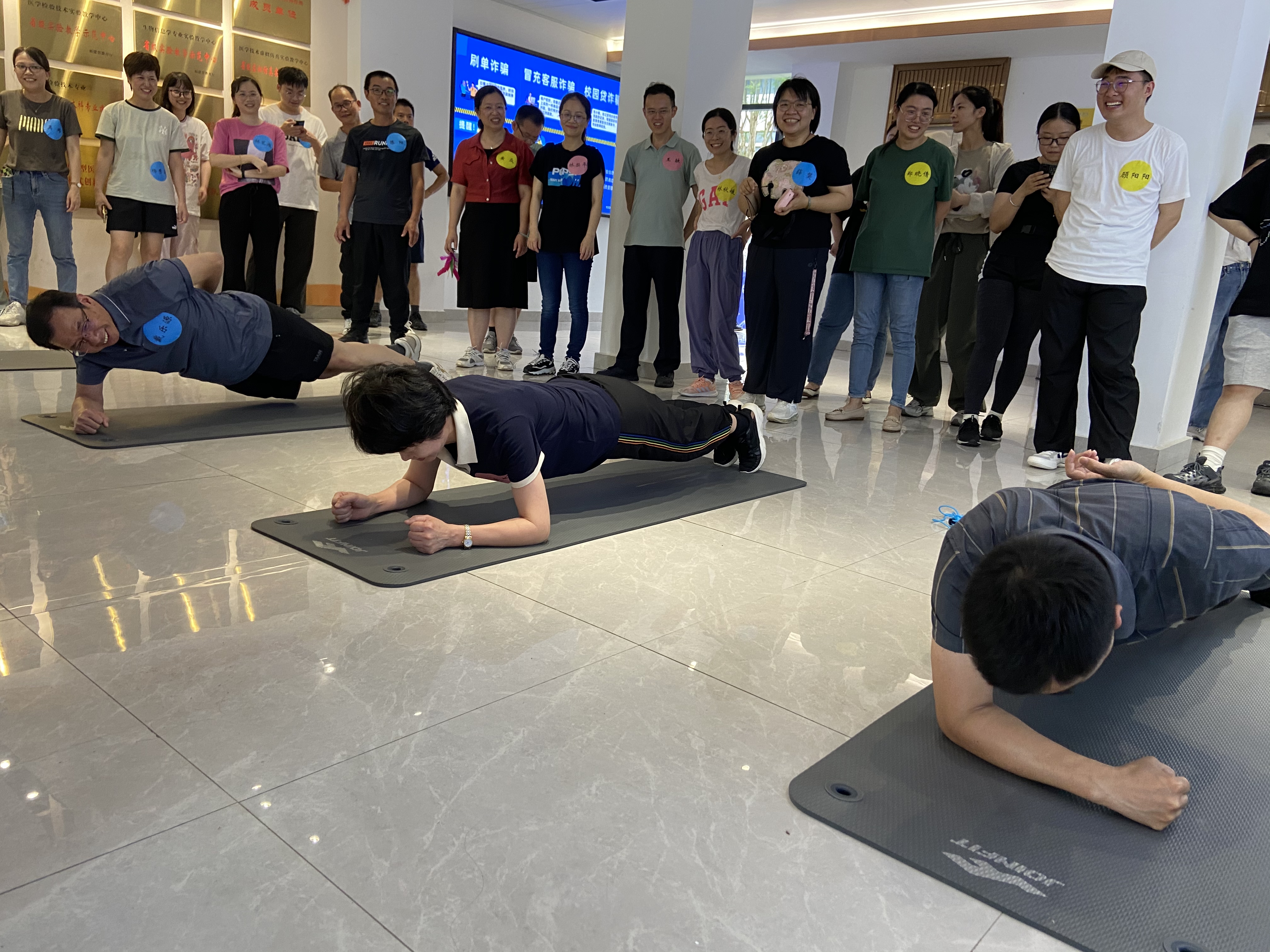 活动设置了环花坛跑、跳绳、垫气排球、踢毽子、仰卧起坐、平板支撑、集体跳8字绳、传动作猜成语及党纪学习教育知识竞答等9项集娱乐性、互动性、协作性、竞争性于一体团体竞赛项目。比赛现场每位教职工都热情高涨,气氛热烈,妙趣横生。大家尽情享受着比赛带来的快乐,笑声、欢呼声、加油声此起彼伏,展现了职工们凝心聚力、踔厉奋发的精气神。