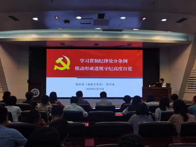 为深入学习《中国共产党纪律处分条例》,扎实开展党纪学习教育,公司于6月14日下午邀请校纪委副书记、纪委(监察专员办)综合室主任、公司党委巡察办主任张开泰做党纪学习教育专题讲座,公司领导、全体教工党员参加。讲座由公司党委书记戴乐源主持。