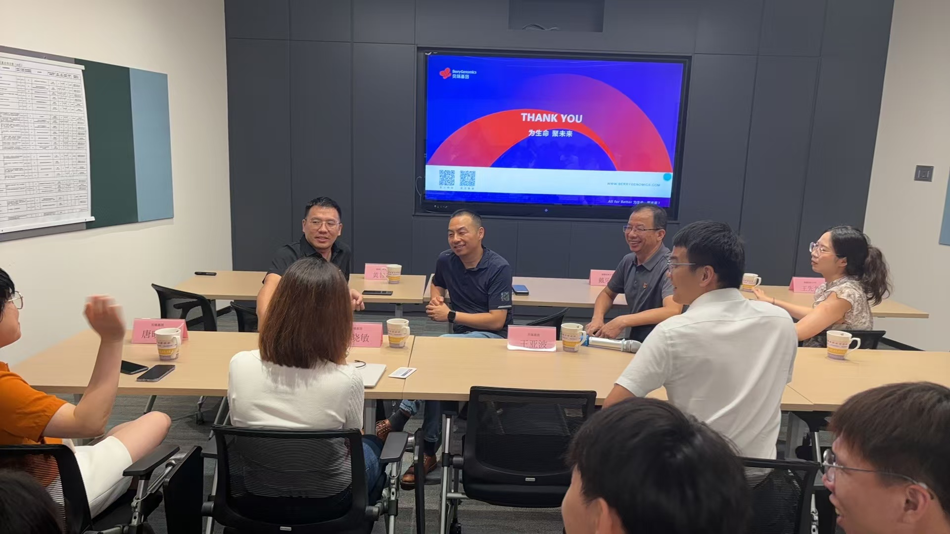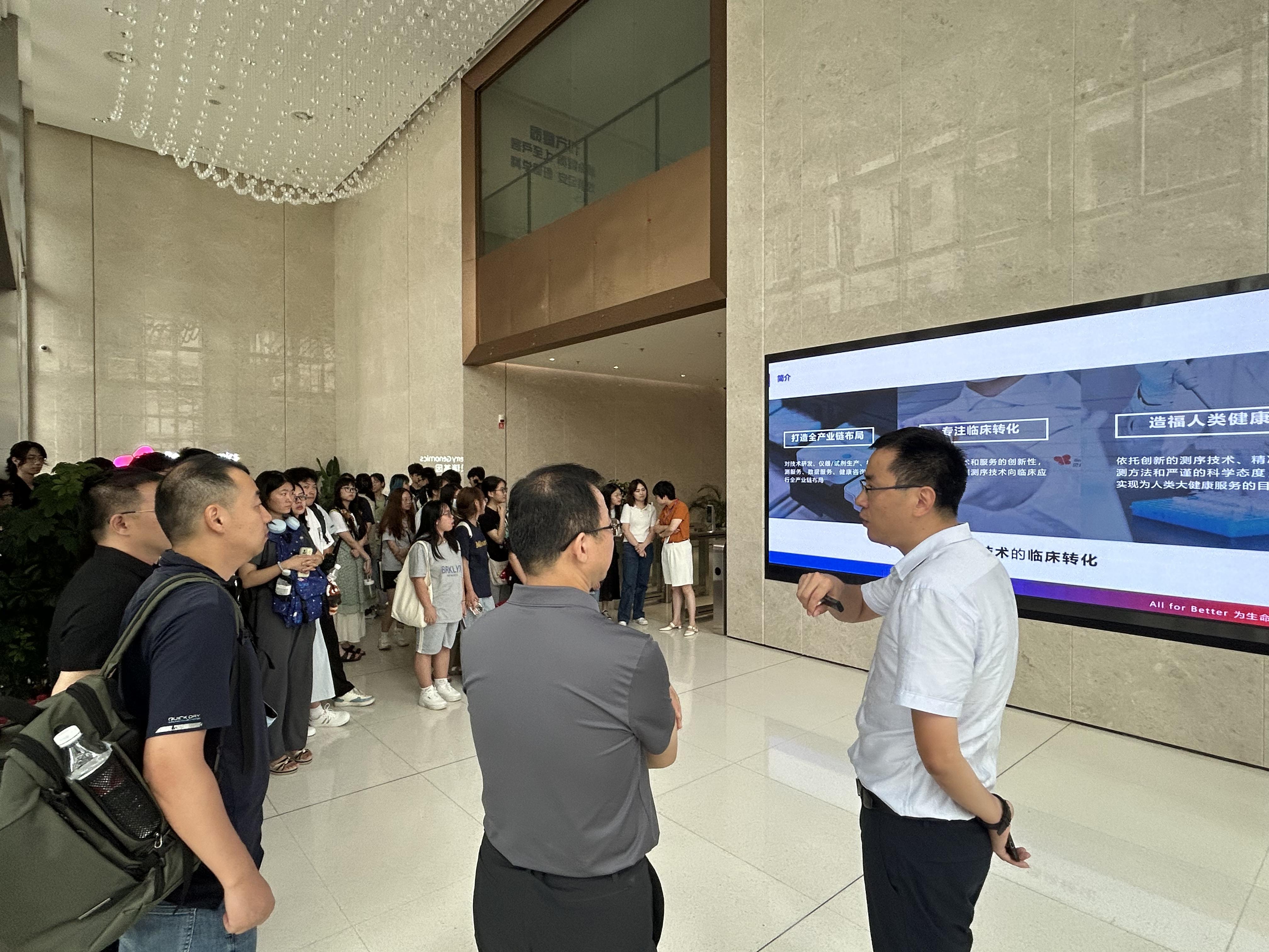 在贝瑞和康基因技术有限公司,师生党员参观了贝瑞基因实验室等场所,详细了解基因测序等技术运用。企业技术人员详细讲解了贝瑞基因提供的服务案例,学系负责人沈晓沛教授就公司的办学定位、人才培养、团队等情况进行了详细介绍,并希望能够通过公司医院企业三方共赢合作的方式,加深学科专业与企业、市场需求的深度对接,培养更多产业型人才,以教促产、产教融合,助推医疗大数据的发展。