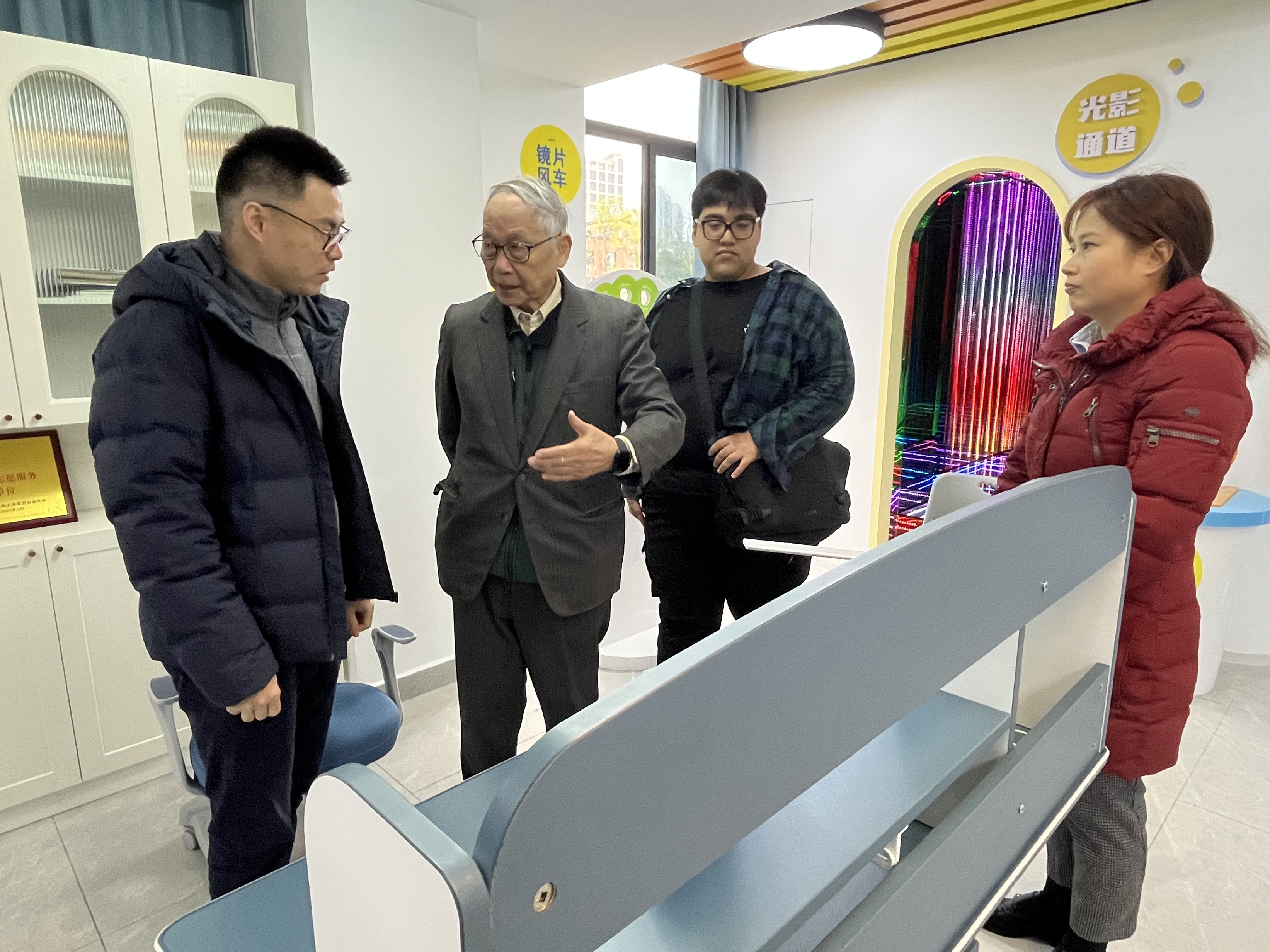 随后,胡教授一行实地参观了眼视光学实验室与福建省儿童青少年近视防控研究中心科普馆,全面了解公司在人才培养、科学研究和社会服务等方面的实践经验。胡教授对公司“教学-科研-社会服务”三位一体的发展模式给予高度评价,认为其在团队建设与社会服务方面具有显著的示范意义,表示将在眼视光学科的人才培养、科学研究、成果转化等方面加强合作,共促眼视光事业的发展。