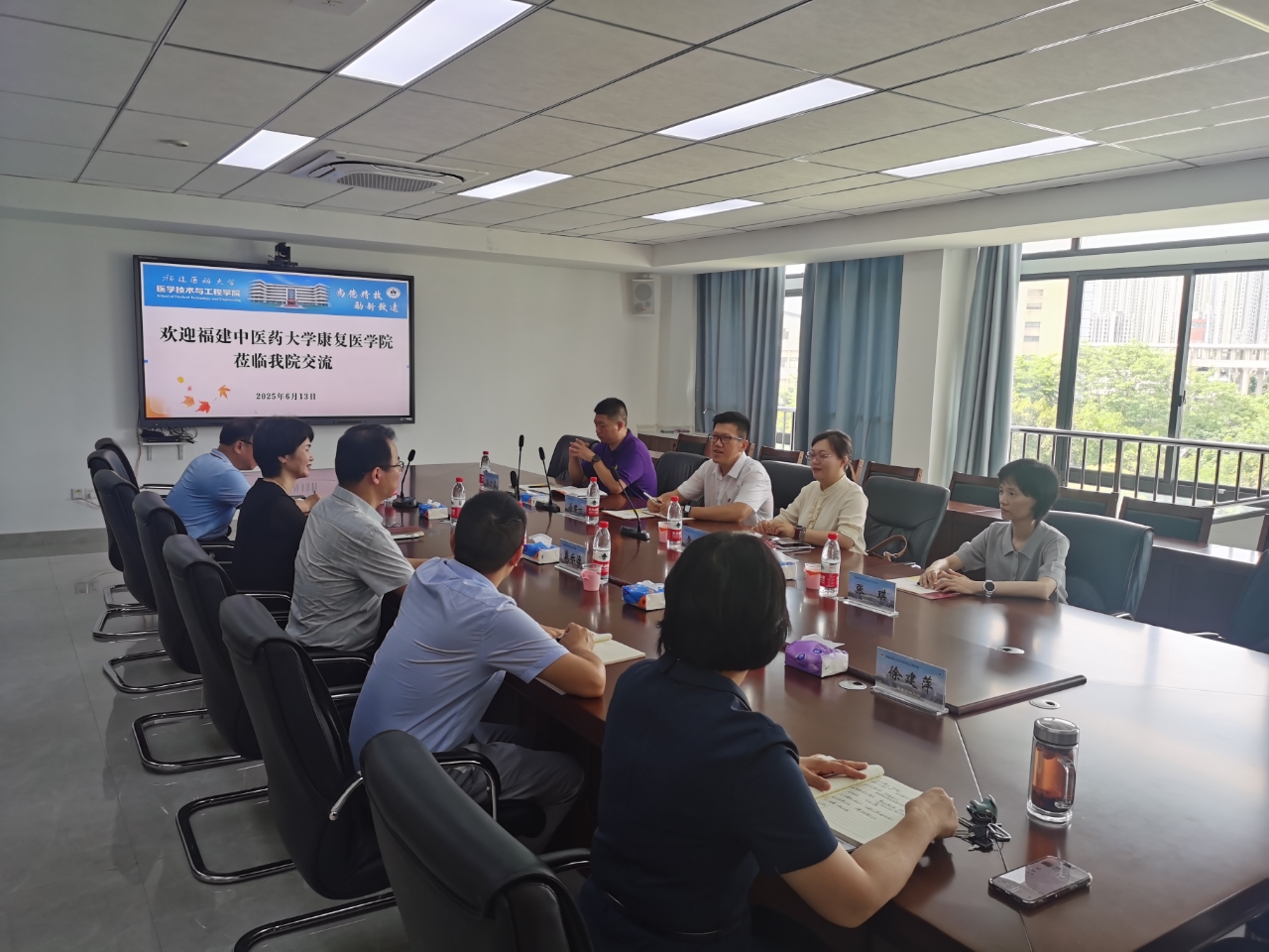 6月13日上午,福建中医药大学康复医公司党委书记关君一、经理黄佳、经理助理陈少清、作业治疗教研室主任张琪一行4人莅临公司开展医学技术团队建设方面调研交流。公司党委书记戴乐源、经理林东红、党委副书记薛来兴、副经理连铸淡、教科办主任徐建萍参会。交流会由党委书记戴乐源主持。