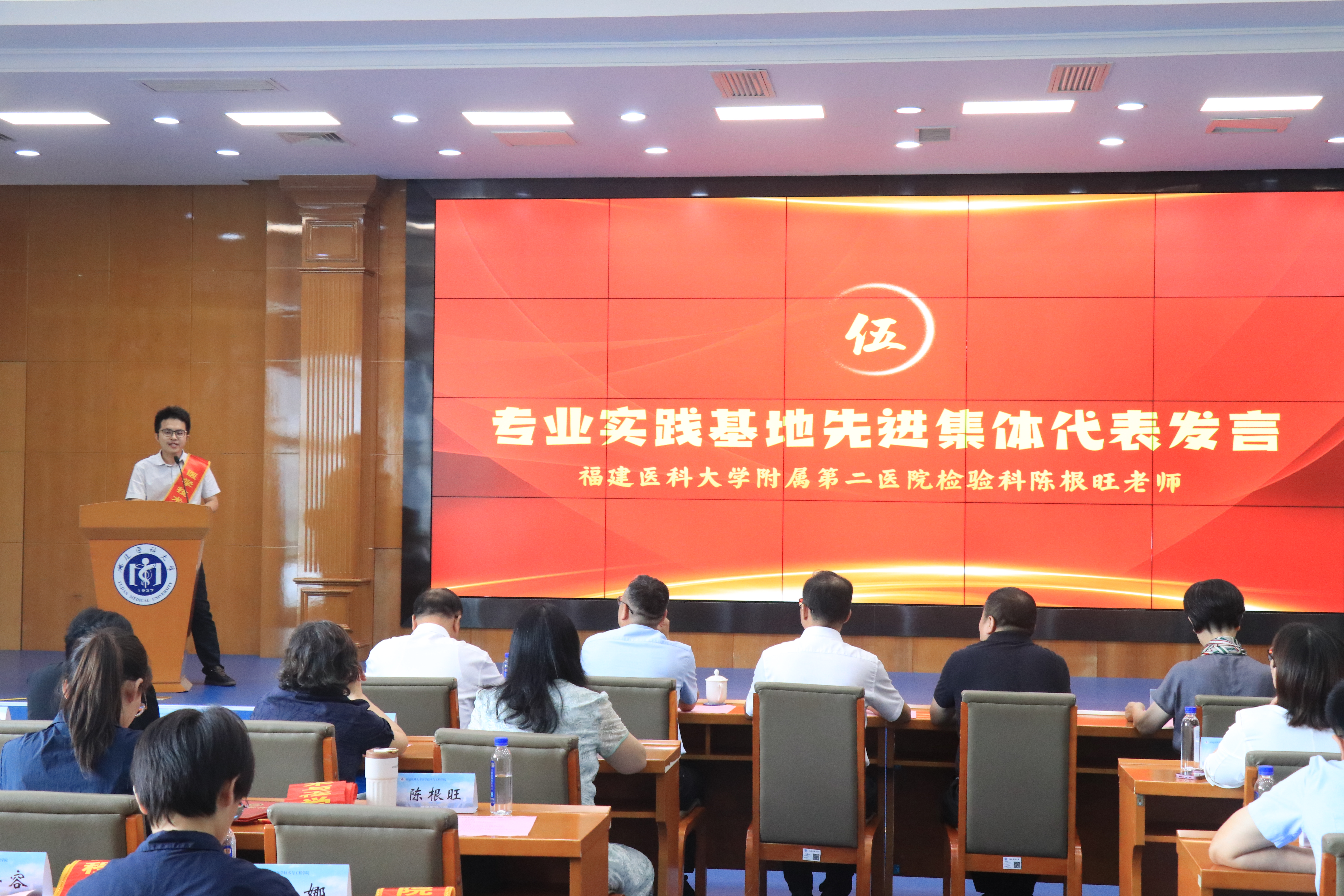 william威廉英国官网附属第二医院检验科陈根旺老师作为专业实践基地先进集体代表,介绍了实践教学基地在协同育人等方面的经验与成果。
