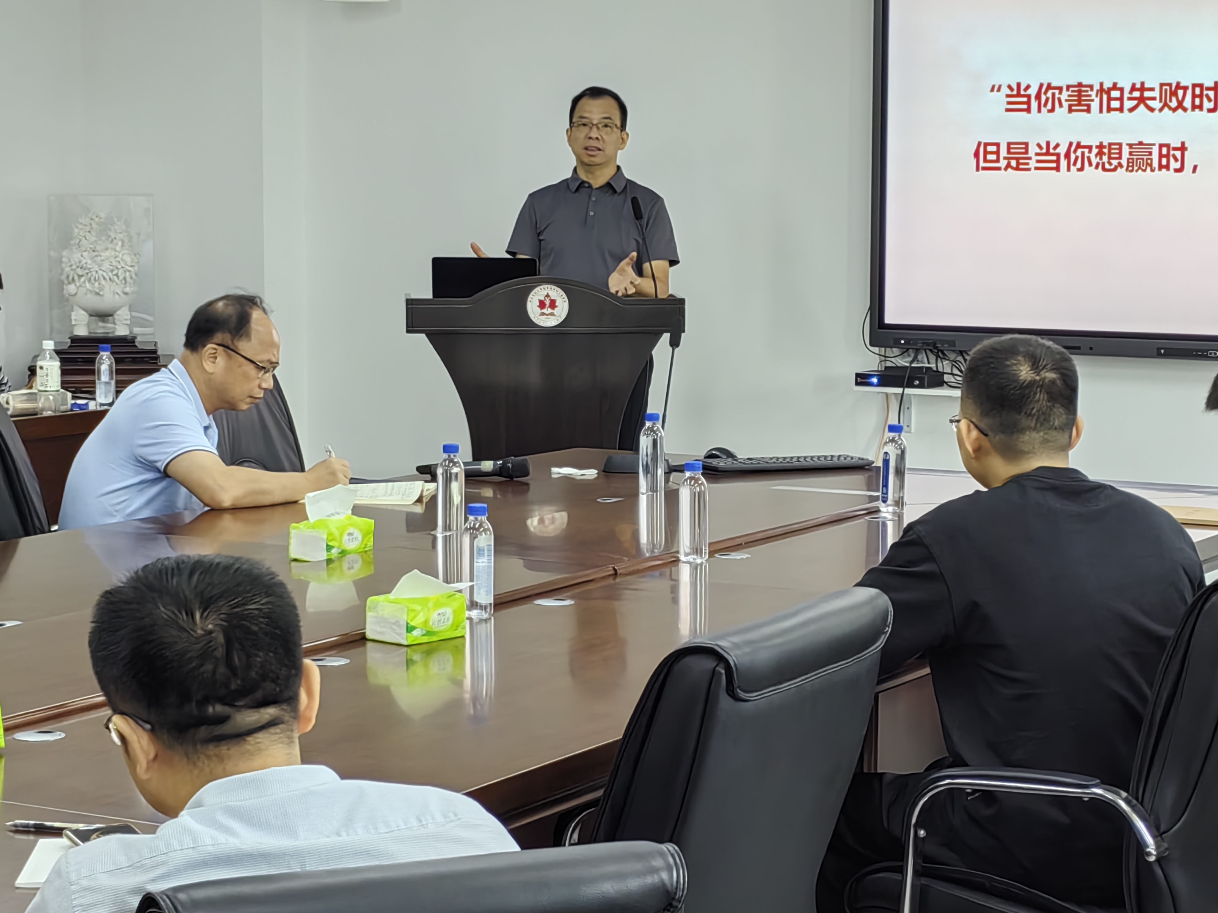 最后,公司党委书记戴乐源作总结讲话。他首先代表公司对付志飞和吴淙贤2位老师的分享表示感谢,并提出三点期望,一是要有“不怕失败”的勇气。 科研本质是“探索未知”,老师们要从每一次失败中总结经验,在反复打磨中提升申报书质量。二是要有“时不我待”的态度。 当前正是申报工作关键阶段,大量细致的工作需要完成。从选题凝练到本子打磨,每一环节都等不得、慢不得,必须全速推进。三是要有“久久为功”的坚持。国自然申报不是“突击战”,要把科研融入日常,在长期积累中凝练方向、形成特色。希望全院教师以本次推进会为起点,凝心聚力、奋楫笃行,在2026年国自然申报中再创佳绩,推进公司高质量发展!